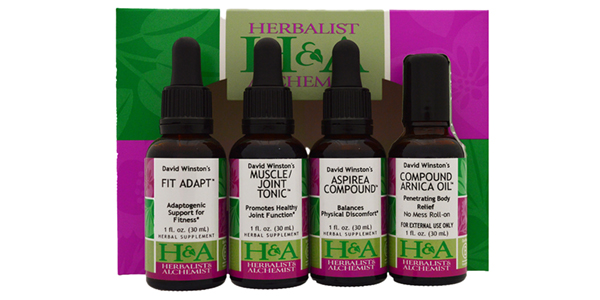 The Fitness & Recovery Kit includes four formulas: Fit Adapt™ - David's favorite adaptogens for athletes of all levels, Muscle/Joint Tonic™ - supportive to the muscles, joints and connective tissue, Aspirea Compound™ - helpful to balance physical discomfort many experience the day after a new muscle group workout and completing the kit is soothing topical Compound Arnica Oil™ no athlete should be without.