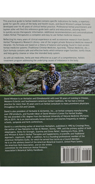 David is a contributing author of American Herbalism, published in 1992 by Crossings Press, the author of Saw Palmetto for Men & Women, Storey, 1999, and the co-author of both Adaptogens, Herbs for Strength, Stamina and Stress Relief, Healing Arts Press, 2019, and Winston & Kuhn’s Herbal Therapies and Supplements; A Scientific and Traditional Approach, Lippincott, 2008.