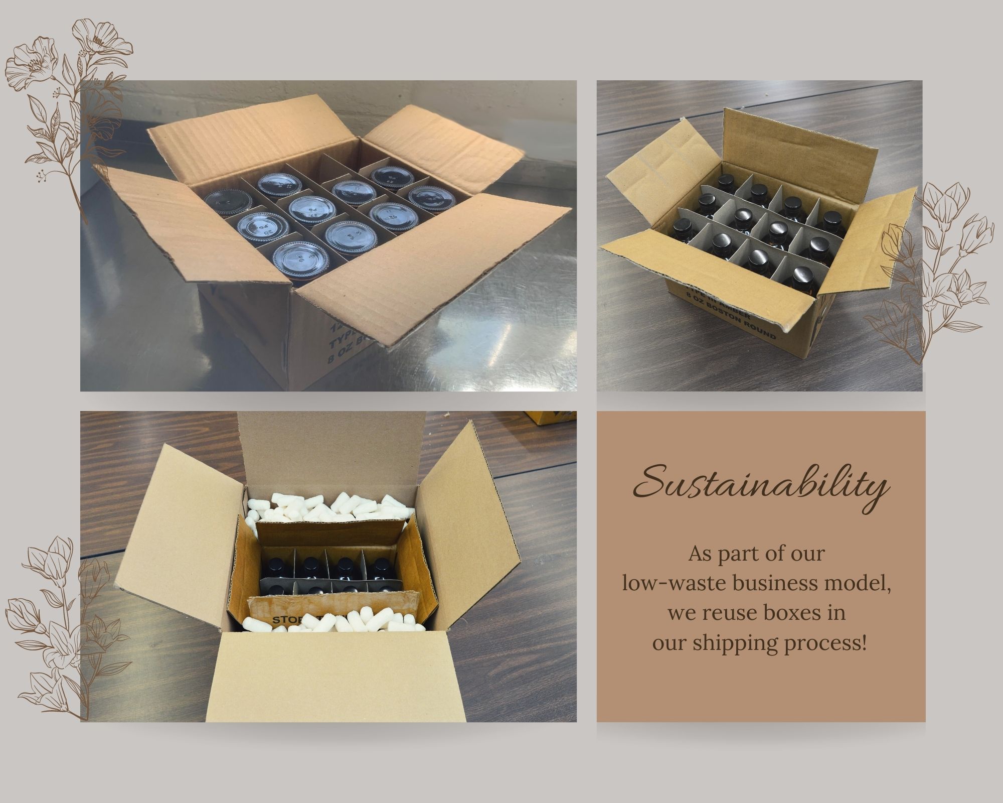 We re-use divider boxes, paper fill, and shipping boxes. We use biodegradable compostable packing peanuts. We ship economically by using the least material possible while keeping the glass bottles safe. These are a few of the ways we strive to reduce the footprint of your H&A shipment.